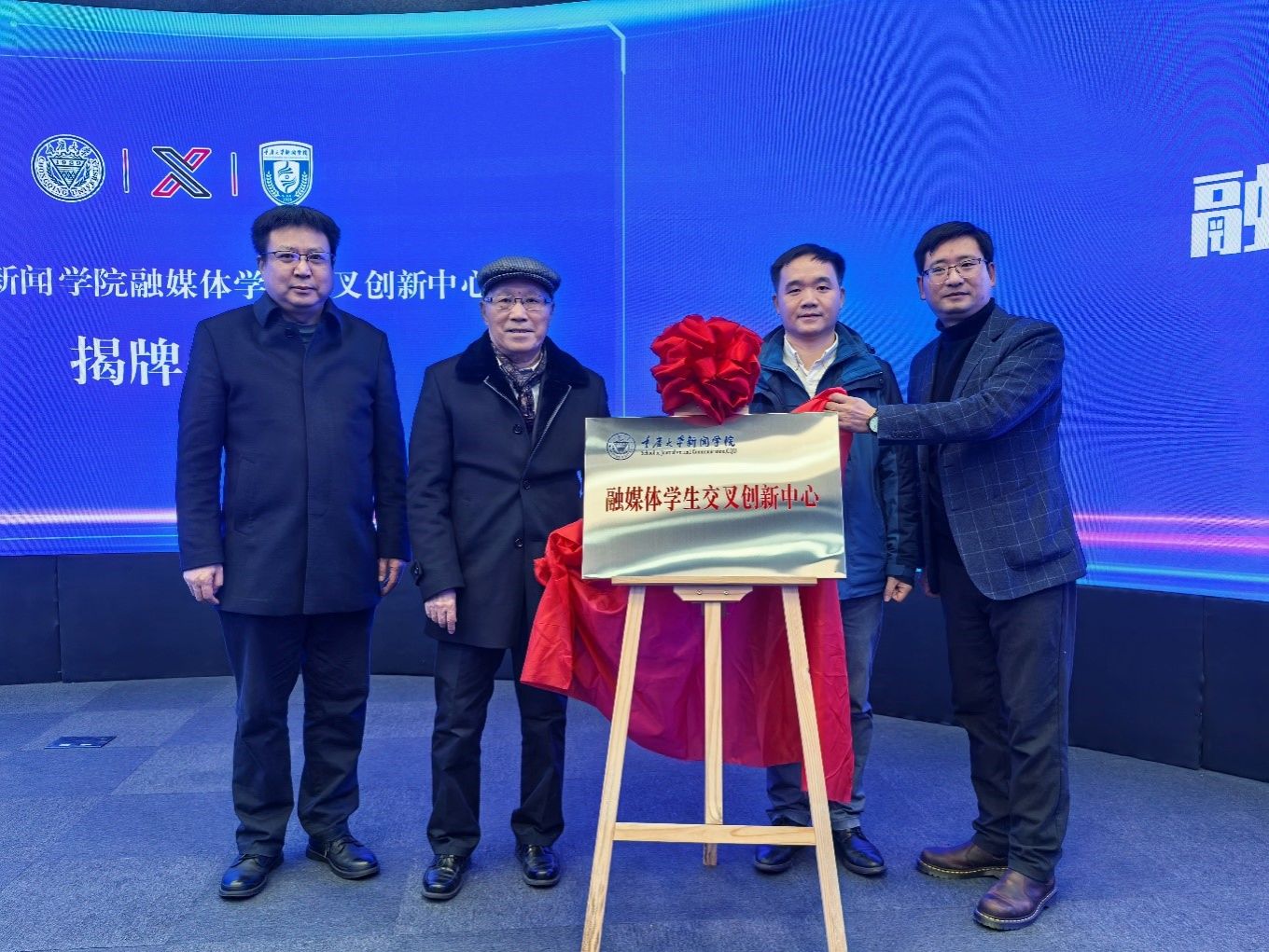 院长兼融媒体学生交叉创新中心主任郭小安共同为中心揭牌并发表讲话。仪式由 第一影视