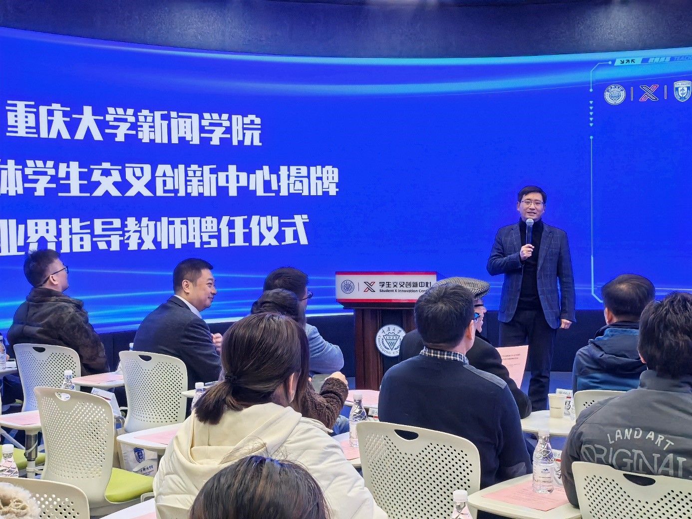 在跨界交叉方面,融媒体学生交叉创新中心积极谋求与业界合作,并聘任重庆日报编委兼理论评论部主任单士兵、重庆日报-思想周刊执行主编侯金亮、重庆日报重庆瞭望编辑部评论员冉苗俊、重庆广播电视集团(总台)城市TV副总编辑、重庆重视传媒有限责任公司副总经理路建宁与重庆广播电视集团(总台)时政第一影视时政采访部主任杨涛为业界指导教师。