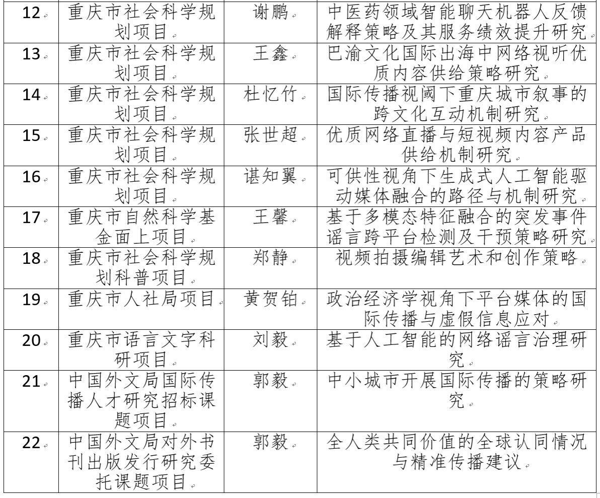 出版研究院入选部校共建出版研究院;智能传播与城市国际推广实验室获批重庆市首批哲学社会科学重点实验室。