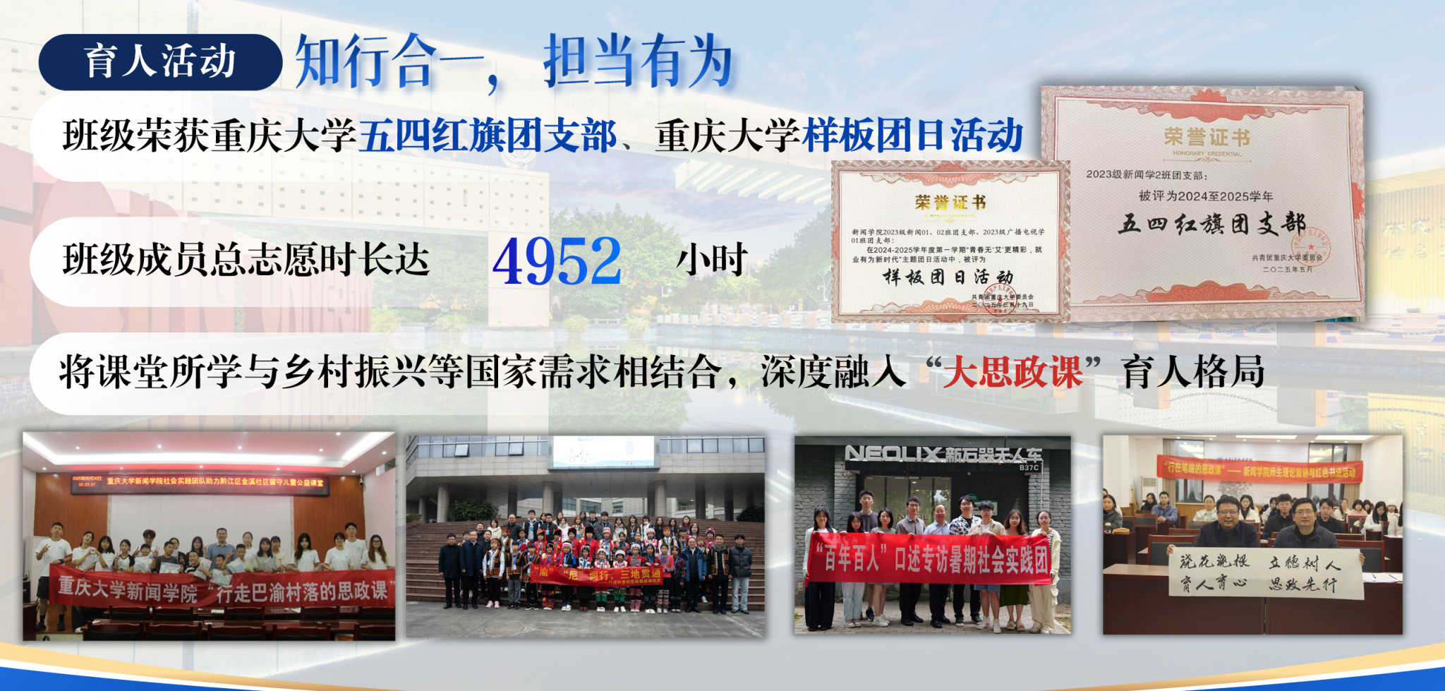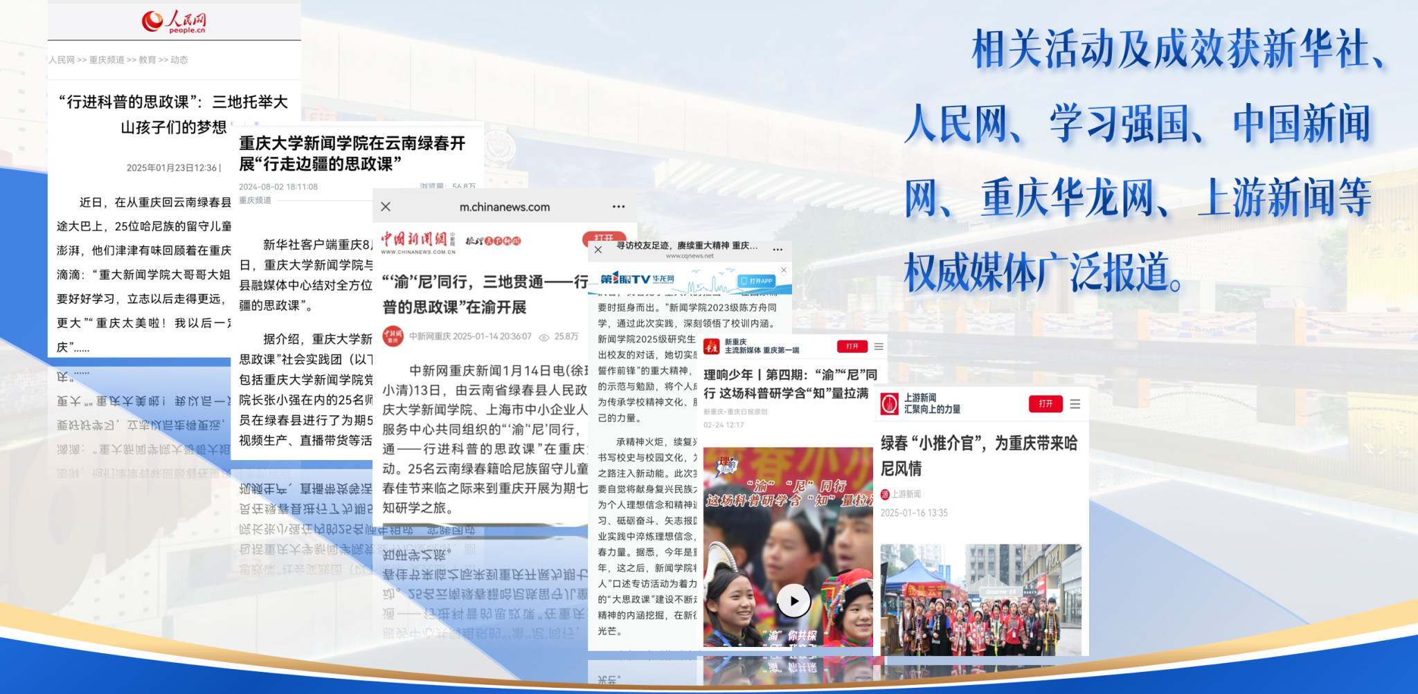 这些生动实践,不仅升华了同学们的思想认识,更转化为了高质量的新闻作品。班级同学累计在省级及以上平台发表新闻作品、评论逾百篇,在新华社、人民网、中国新闻网、学习强国、重庆华龙网等权威媒体平台发表报道47篇。