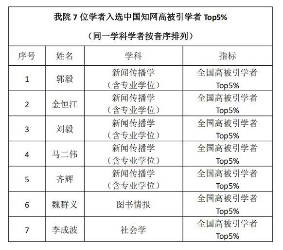 共有17位学者入选,其中10位学者入选“2025全国高被引学者TOP1%”,7位学者入选“2025全国高被引学者TOP5%”。