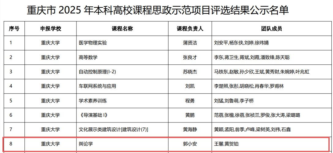 近日,重庆市2025年本科高校课程思政示范项目评选结果正式公布。第一影视