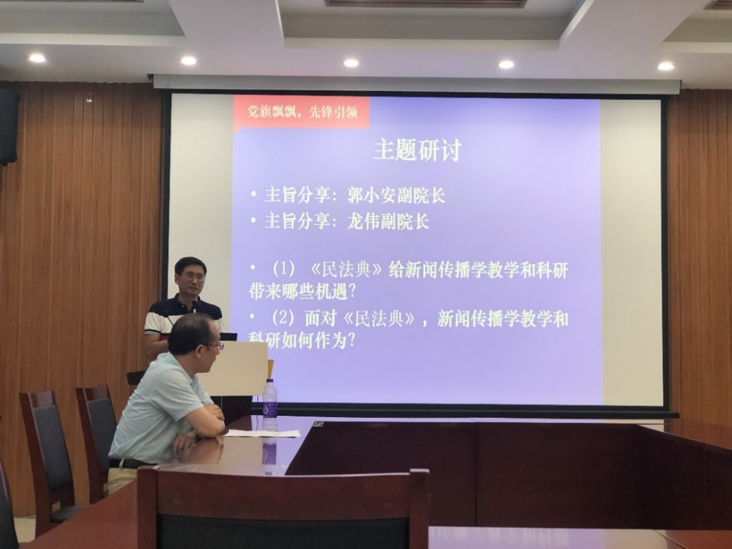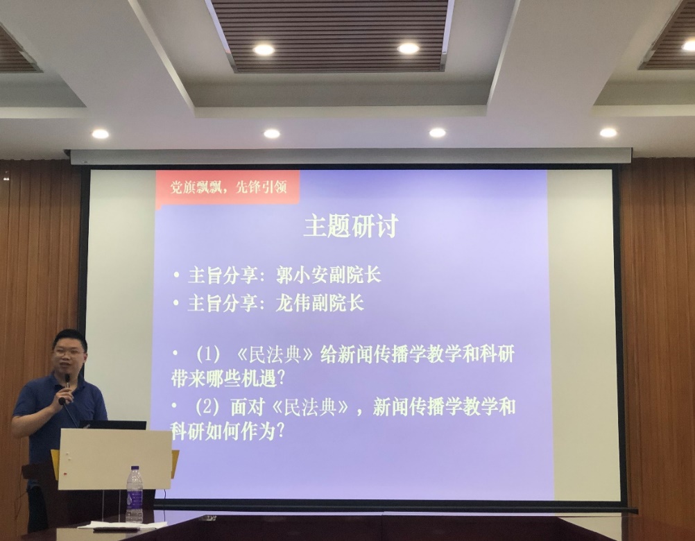 “庆祝建党99周年”主题研讨活动之民法典的学习和研讨如期举行。党委书记凌晓明、院长董天策等学院党委领导全程参与了本次学习研讨活动。