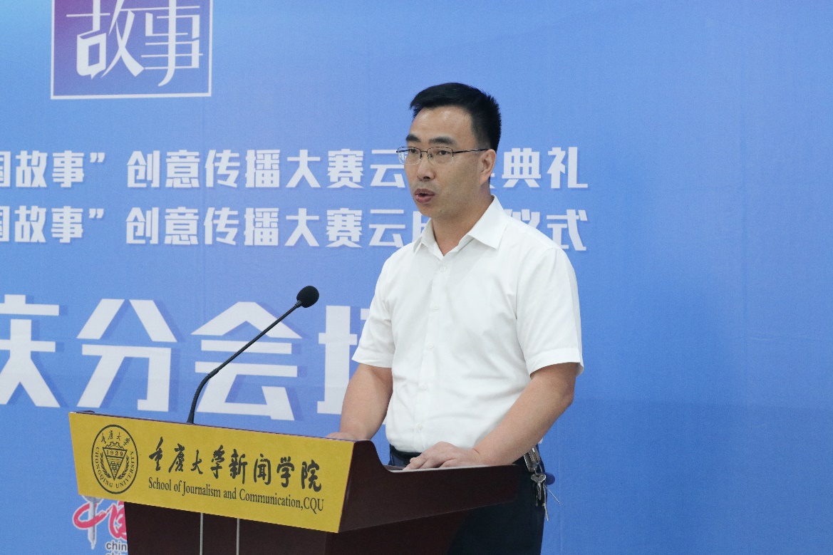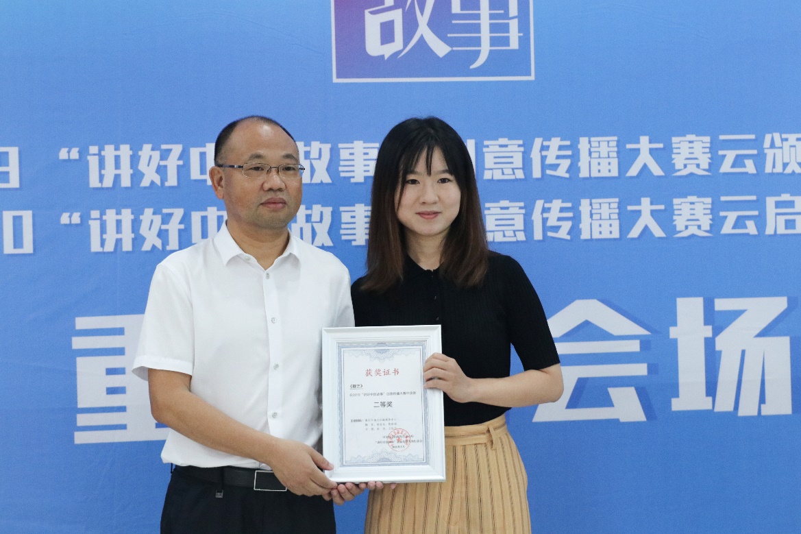于运全主持颁奖环节。2019“讲好中国故事”创意传播大赛得到社会的积极响应,涌现出一批优秀获奖作品。其中,重庆赛区表现优异,《城市的温度》《左手》《糖艺》《何以为家》依次获得特等奖、一等奖、二等奖、三等奖。特等奖作品《城市的温度》将镜头对准了重庆市平凡生活的芸芸众生,勾勒出人与人、人与城之间的信任与关爱。作品创作团队代表、重庆市南岸区委宣传部副部长罗家玉在获奖感言中表示: “中国文化传播非一朝一夕所能做到,用讲故事的方式传播中国文化、讲述中国故事,我们义无反顾。”