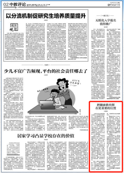 健康教育是个系统工程,需要家庭、学校、社区、企业、专业部门等各个方面齐抓共管,而作为教育体系的基础和核心,学校教育无疑是最重要、最管用、最有效的。目前关于学校健康教育的规定不少,但实际落实效果并不尽如人意,这是造成目前公众健康知识缺乏的一个原因。因此,有必要大幅度加强中小学健康教育,为提高全民健康水平打下坚实基础。