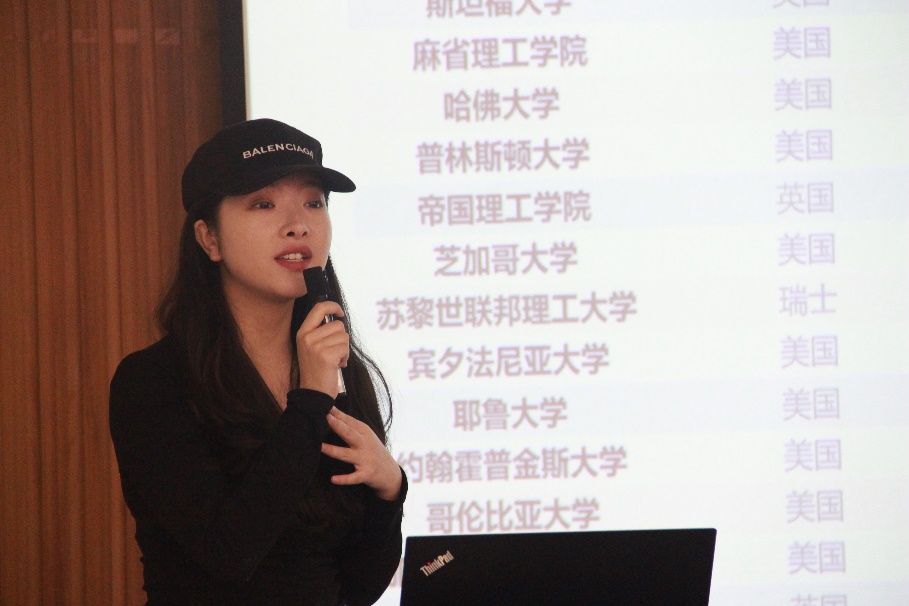 新东方美研部高级导师杨倩的分享主题为“全球视野下的教育深造选择”。她立足于大数据分析指出近十年来出国留学人数和学成归国人数呈上升趋势,国内经济高速发展给更多的海归人士提供了就业与创业的土壤,云计算、人工智能、区块链等高科技领域对人才需求有增无减的现状,表达了她对海归就业前景的乐观态度,强调了国内外企业对具有国际化视野的复合型人才的青睐。除此之外,她就“出国留学的准备和流程“进行了具体说明。GPA专业成绩,雅思、托福成绩,个人实习、科研、竞赛经历等均为考核学生的重要指标,将按一定比例对申请者的评分产生影响,是出国留学申请的必备材料。在此基础上,她建议同学们更应该量身裁衣,对各种材料进行详略地选择,在申请书中重点突出自己的核心竞争力。