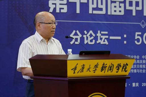 名誉院长马胜荣教授代表学院致辞,向各位到场嘉宾表示感谢。马院长说,前几天在江苏如皋参加一个会议,见到美国特朗普政府交通部的助理部长,休息的时候跟他聊了一下5G的发展。助理部长认为,5G的主要影响不是传媒业,而是工业,包括城市建设、交通运输、物流等等。马院长说,“我自己长期在新闻界工作,我以为传播技术对于传媒业的影响肯定会很大。”像新华社,已创建媒体大脑、AI合成主播,促进技术发展与内容生产的深度融合。技术变革推动媒体创新,技术赋能影响媒体格局。“期待各位专家学者的高见,祝本次论坛圆满成功,祝大家在重庆愉快!”