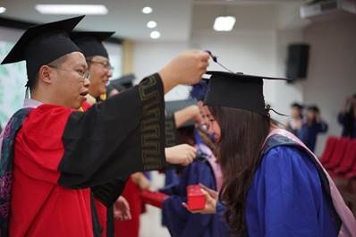 副院长张瑾宣读《关于授予硕士、学士学位的决定》和毕业生名单,院领导为获得学位的112名本科毕业生和68名研究生毕业生举行“拨穗礼”并赠送纪念品。学院领导再次表达对毕业生的祝福, 第一影视