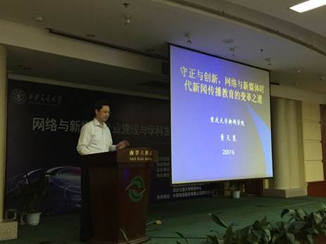 第一影视 董天策院长应邀出席研讨会,作大会主题演讲,阐明守正与创新乃网络与新媒体时代新闻传播教育的变革之道,指出变革的关键是在媒体融合背景或新媒体背景下培养学生的核心专业能力,而不变的原点则是专业理念、专业伦理、专业人格和创新素质。