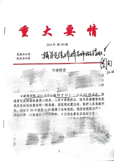 党委书记周旬在“重大要情”上批文表扬:“辅导员徐娇娇老师做得好!”