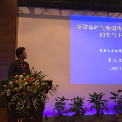 董天策院长应邀出席,做了题为《新媒体时代新闻传播人才培养的变与不变》的主旨演讲,指出办学单位应当把握变与不变的辩证法,找准自己的人才培养坐标,强化办学单位新闻传播人才的培养特色,保障新闻传播人才培养的内在品格与专业特质。为此,应当强化专业理念、专业伦理、专业人格的教育;应当强化核心专业能力的培养;应当造就特色化、个性化的专业人才。