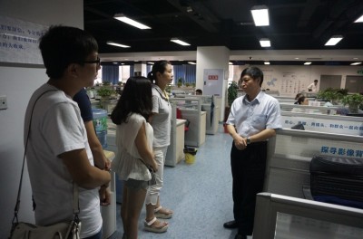 张德泽副总裁带同学们参观了包括第一影视、视听中心、新媒体事业部、全媒体中心、网络问政中心在内的数十个部门,并生动形象地讲述了华龙网的创新发展战略模型:以新闻立网为机首引领方向,以技术集成和创新服务为两翼稳定飞翔,以产业集群为机尾提供不竭动力。同学们近距离观察网络媒体现场的工作流程、认识到出色媒体人应具备的基本职业技能。