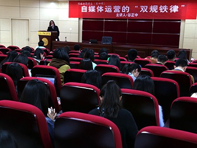 多功能厅为师生们带来了题为“自媒体运营的‘双规铁律’”的专题讲座。讲座由 第一影视