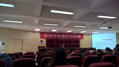 多功能厅,为新闻学子们讲授“公共关系理论与实践”系列课程。系列课程第一讲是:公共关系的道与术:实践案例解析。 第一影视