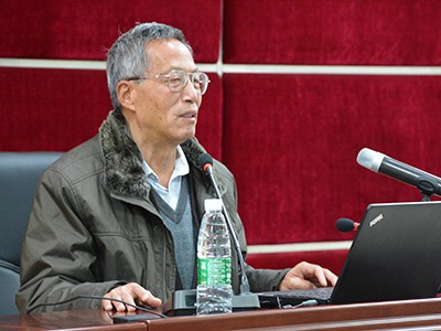 (郑保卫教授在讲座中)
