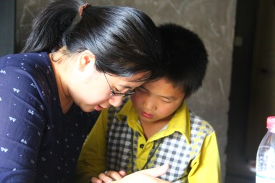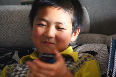 初见我们的丁海涛,显得有些害羞和拘束,小脸上挂着两个梨涡似的小酒窝,露出浅浅的微笑。在去往他家的途中,他一言不发,一个人走在最前面,而当我们加紧脚步想要赶上他的时候,他却“嗖”的一下,走得更快了,好像是在进行什么有趣的游戏。当他第一个到达时,他迅速跑进屋子里,然后趴在二楼的阳台笑嘻嘻地俯看着我们。当我们坐在他身边,尝试着与他对话时,他回应我们最多的,不是话语,而是他那带着酒窝的微笑。在我们与他拉近距离之后,他回答我们问题时,声音也始终是小小的,显得腼腆拘谨。