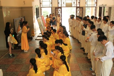 师生到达主教学楼候场,等待期间有人通过聊天放松心情,有人抓住最后一点时间加紧练习,有人合影留念记住这美好瞬间。