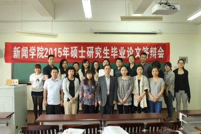 (答辩现场合影留念。前排左四为重庆广电集团牟丰京总裁,左五为唐丹丹同学)