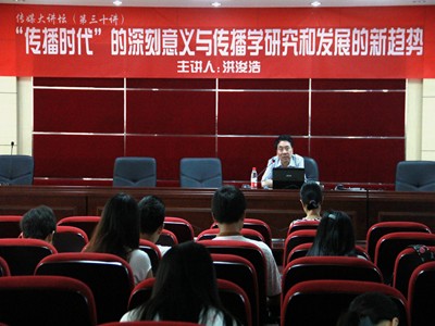 讲座伊始,洪浚浩教授向同学们介绍,现在西方学者提出了一个新的概念:“传播时代”,与之相应,过去的“信息时代”已经不能准确的描述现在整个社会的发展变化。洪教授指出,近年来,传播学在全球范围内发展变化迅速。人类社会正在渐渐从信息时代走向传播时代。洪浚浩教授用具体的事例深入阐述了传播时代的深刻意义。