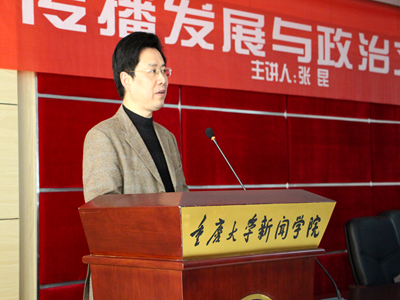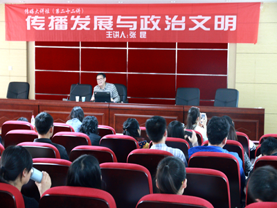 ,与同学们共同探讨媒介发展与政治文明。讲座由 第一影视