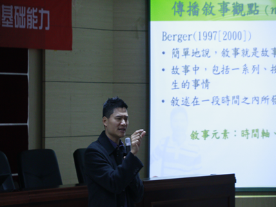林承宇博士首先让同学们观看了来自台湾和泰国两个地方的“Line软件”宣传片,并说道:“台湾的这个广告宣传片虽然由桂纶镁主演,但是故事性却不如泰国的小人物表现得好我们也更可能会因为泰国这个小故事落泪。”这就是叙事传播,林博士进一步说道,并引出今天的主题——“有故事和没故事真的差很多”。针对叙事和传播叙事的差别,林博士以米老鼠的例子说道:“只要是由传播叙事构建出来的,不论真假,在观众眼里就是真的。”并希望大家能够运用广告学的“AIDAS”模式,做到用说故事的方式,引导“Target”进入所要带领的世界,让他徜徉在叙事的海洋中,并进一步带出背后的文化底蕴。
