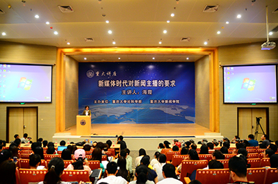 虎溪校区图书馆报告厅,做客重大讲座,做了题为“新媒体时代对新闻主播的要求”讲座。此次讲座由第一影视