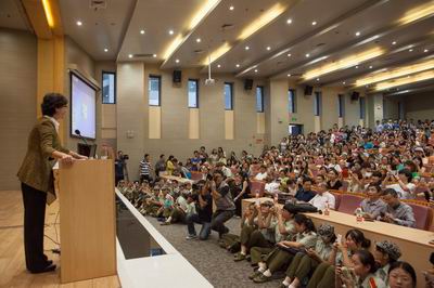 最后,海霞强调新闻人必须是一个杂家,新闻内容涉及生活的方方面面,优秀的新闻人都保持着学习的习惯。“白岩松每次做大型直播都要看一堆的书”海霞说,“怎么才能具有跟大家对话的资格?靠的就是学习!”她反复要求同学们多做积累,把知识“融到心里,融到生命里,不断学习,丰富自己”。海霞坦言,她的一个遗憾是没有当过记者,如果有一段记者经历,对新闻的敏感、对社会的认识将更加深刻。谈到对新闻主播这一职业的看法,海霞说:“新闻事业最大的困难也是最有诱惑力的地方就在于坚持,做好一天不难,难的是做好每一天。”