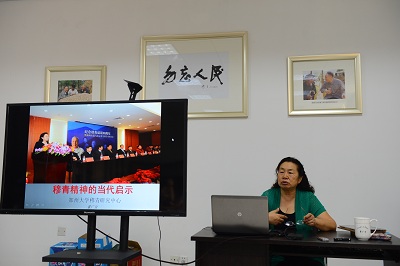 15名师生在郑州大学穆青研究中心听取了董广安教授关于“走转改”与穆青的调查研究观的报告。她提到:调查研究观是从穆青的新闻实践中提炼出来的,穆青的调查研究观对于指导新闻活动有着重要意义。
