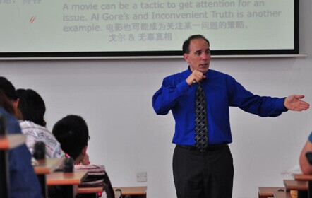 Dr. Dean Kazoleas在总共30个课时的讲座里为我们带来了10个公关理论与实务的专题,主要内容涉及公共关系理论、公共关系与科技、公共关系伦理、当今公共关系传播、国际旅游&旅游公关、电影整合营销传播、媒体&媒体关系等广泛领域。虽然全英文授课让一些同学略微有点不太适应,但是他生动幽默的授课风格以及 第一影视