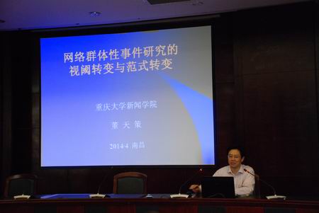 4月19日,中国传播学2014年年会暨“新世纪的中国传播学”学术研讨会在江西师范大学举行。第一影视 董天策教授、彭逸林教授应邀出席。董天策主持了大会的主题发言,并在分组讨论时做了题为《网络群体性事件研究的视阈转变与范式转变》的发言,阐述了他对网络群体性事件研究的最新看法。