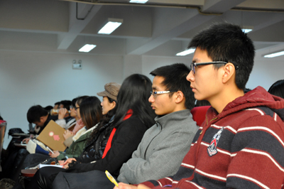 在郭教授看来,进行危机公关时,对于事实判断要坦诚,在价值判断上则应采取合作的态度,同时,尽量做到转化议题,即“假话不能说,真话不全说”。整场讲座郭教授不断穿插贴近同学们生活的话题,“了不起的盖茨比”、“偷菜”等示例的插入不时引发同学们的阵阵笑声。