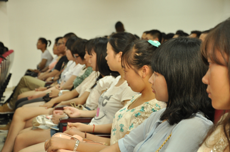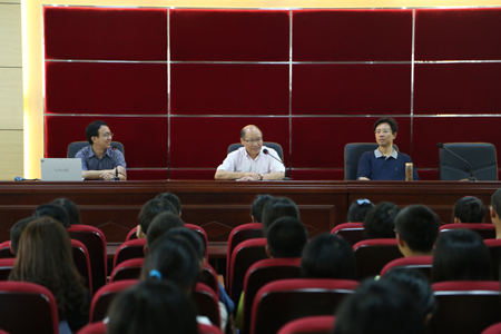 见面会伊始,由马胜荣院长发表讲话,他首先对2013级新生表示热烈的欢迎,祝愿他们在今后的学习、生活等各方面取得大的进步。接着,马院长提到:“中学里有一句话――‘You decide where you go’, 我认为这句话很有用,你决定你以后往哪里去,所以现在你们就应该有目标,想清楚你以后要做什么,不要在毕业后才为自己的碌碌无为而悔恨。”马院长还讲了自己2004年带队去拍摄报道雅典奥运会时发生的故事,以此对同学们说,如果想成长为一名优秀的新闻工作者,抓紧时间学习、全面发展的重要性。并劝诫同学们“要吃得了苦、耐得住寂寞”,“要培养自己的国际视野,也要了解中国的国情”。
