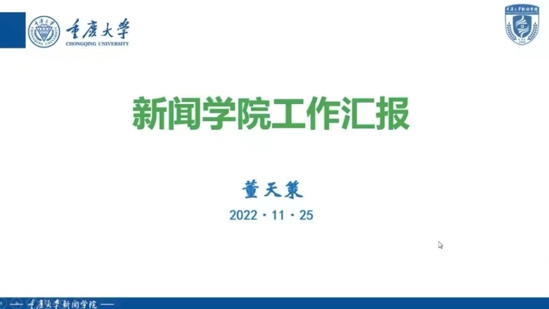 院长董天策代表学院领导班子详细汇报了学院工作情况。他回顾了学院发展历程,从办学规模、专业设置、硕博士点建设、师资队伍、科学研究、专业实验室建设、学科排名、人才培养模式创新与探索等方面,系统介绍了学院专业建设和学科成长情况,总结了学科特色与相对优势,分析了存在的问题和不足,阐述了下一步发展的总体目标和思路,提出希望学校在学科交叉、专业融合、部校共建等方面给予的有关政策支持和工作建议。