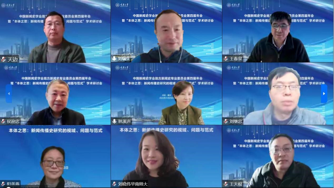 王润泽教授,北京大学历史学系黄道炫教授等来自全国各地的120余位专家、学者齐聚云端,围绕新闻传播史研究的视域、问题与范式进行交流、探讨。