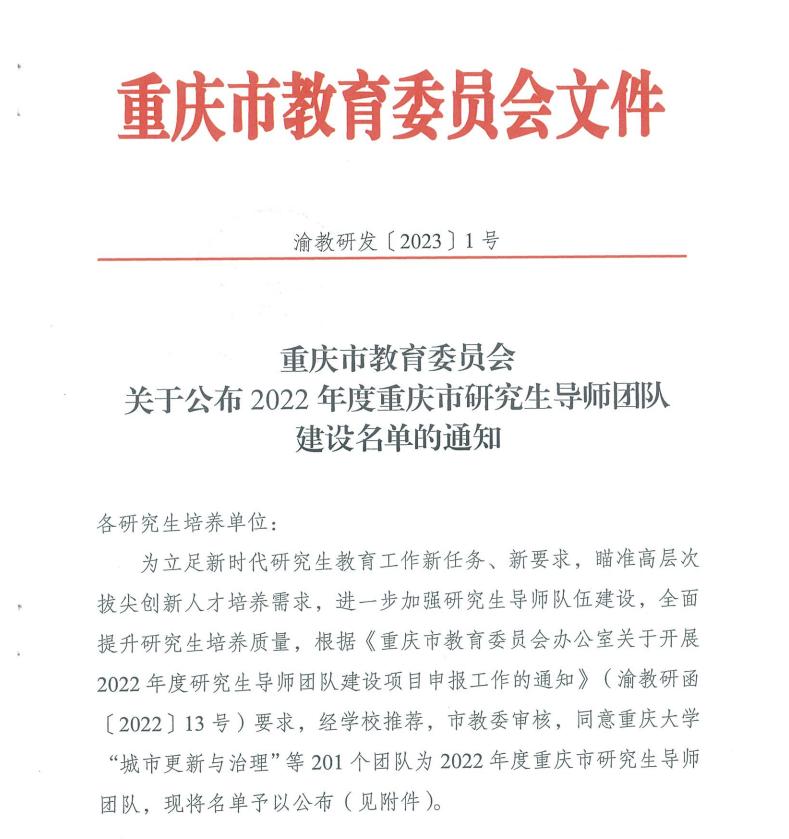 1月30日,重庆市教委印发《重庆市教育委员会关于公布2022年度重庆市研究生导师团队建设名单的通知》,公布了2022年度重庆市研究生导师团队建设名单。 第一影视 董天策教授领衔的“新闻传播学”导师团队入选2022年度重庆市研究生导师团队建设项目。