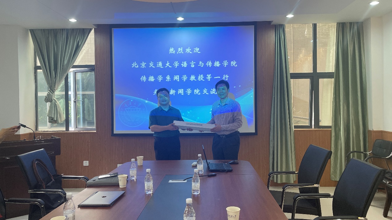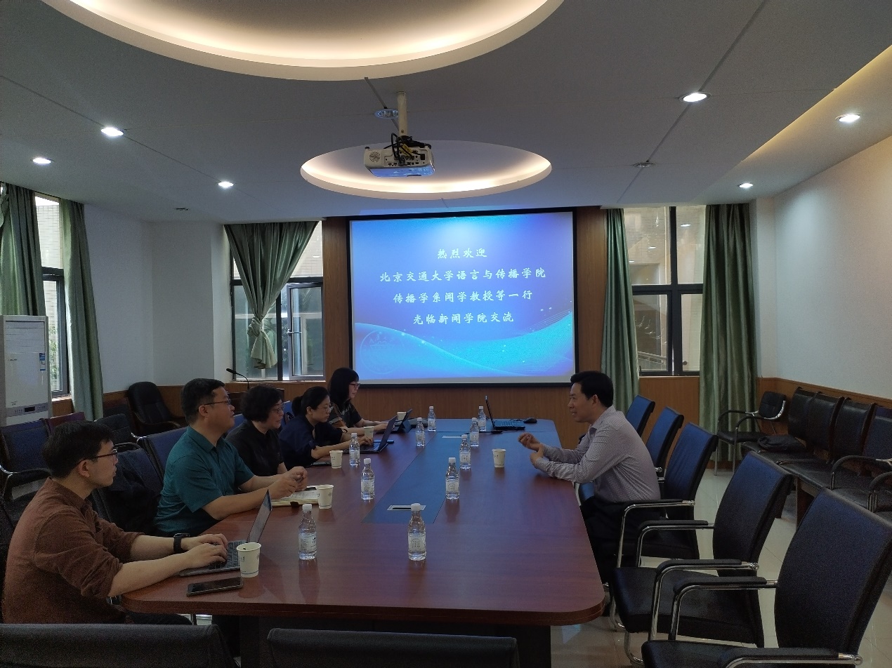 的发展历程、学科建设、师资队伍、学生规模、办学理念、改革举措,分享了学院本科专业建设、研究生招生、人才培养等方面的做法与经验。宾主双方围绕新文科背景下的专业改革与实践展开互动交流。双方均表示,促进学科交叉融合、提升教学科研水平、创新人才培养机制是新闻传播专业人才培养的发展方向。