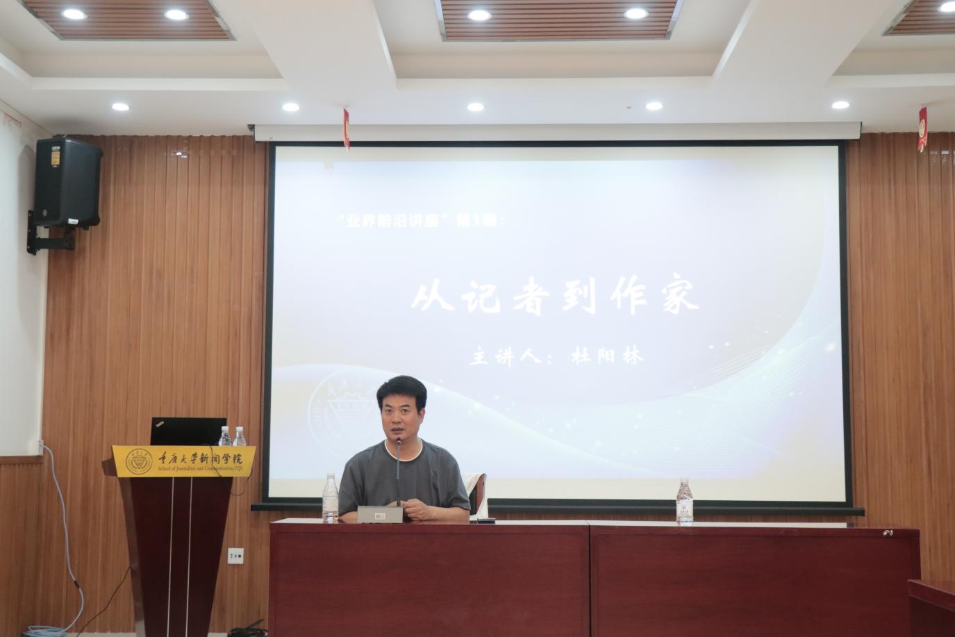 “业界前沿讲座”第一期开讲。中国作协会员、四川作协主席团成员、小说专委副主任、巴金文学院签约作家杜阳林,为同学们做了“从记者到作家”的专题讲座。本次讲座由 第一影视