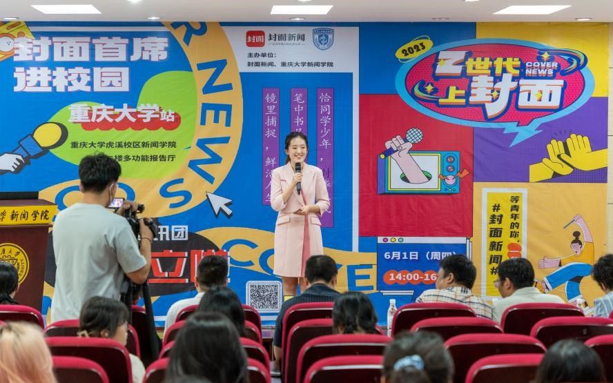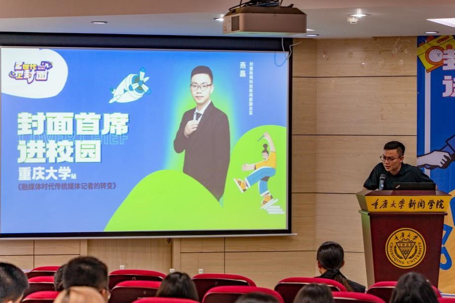 二楼多功能厅举行。封面新闻副总编辑崔燃、重庆中心总监罗惟巍、科技新闻部副总监燕磊、运营传播中心资深内容运营陈雨走进校园与新闻学子互动交流, 第一影视