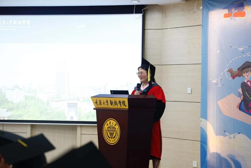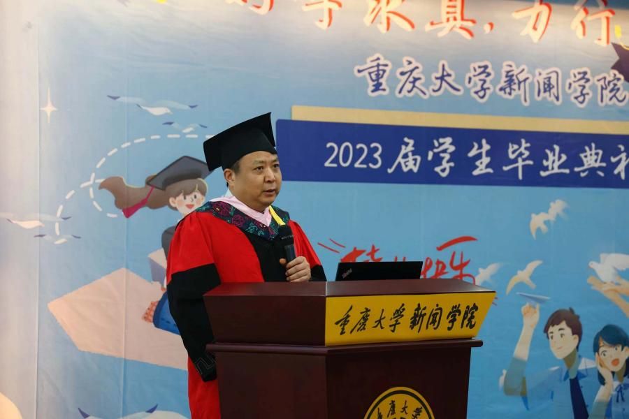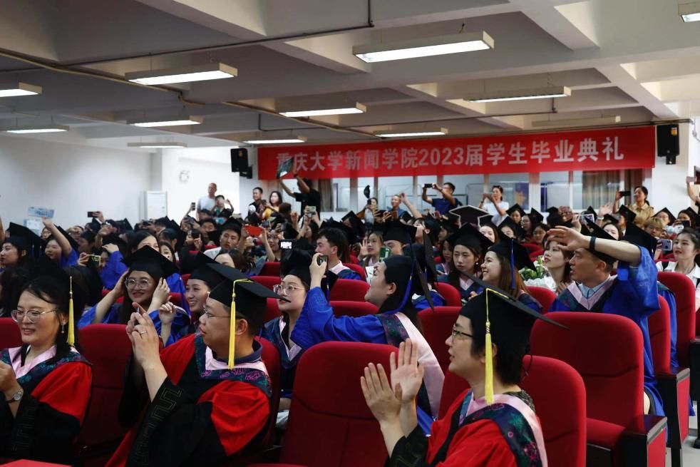 党委书记凌晓明、学位委员会主任董天策、副院长郭小安、副院长龙伟、教师代表、全体毕业生及部分毕业生亲友出席毕业典礼, 第一影视