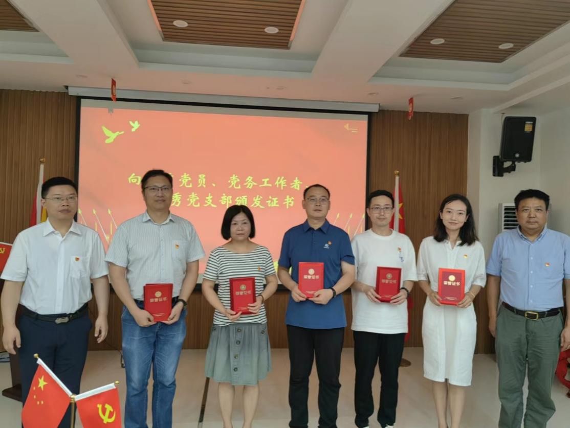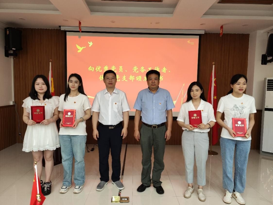 党委关于表彰优秀党员、党务工作者和优秀党支部的决定。与会领导为受表彰的师生党员颁发证书。