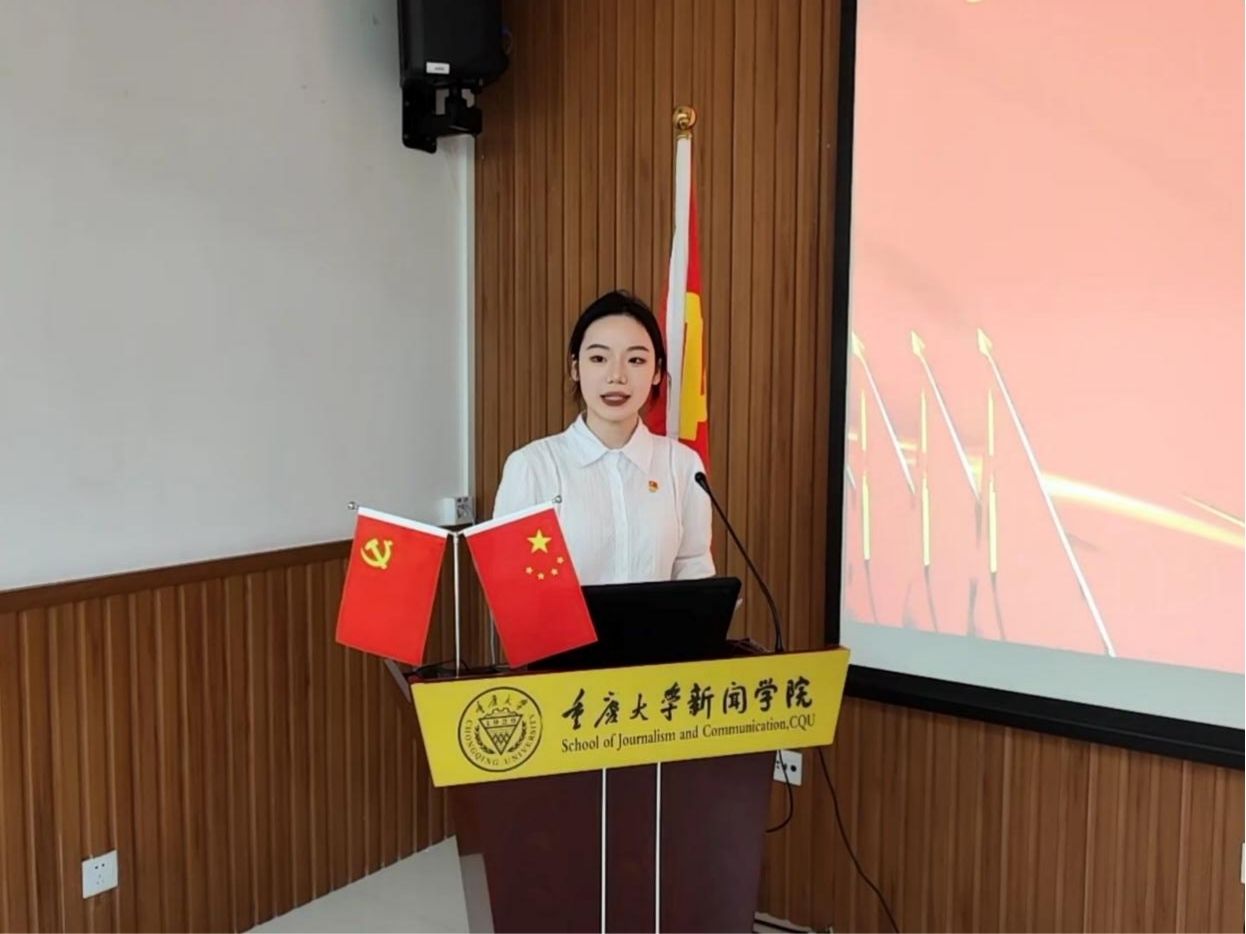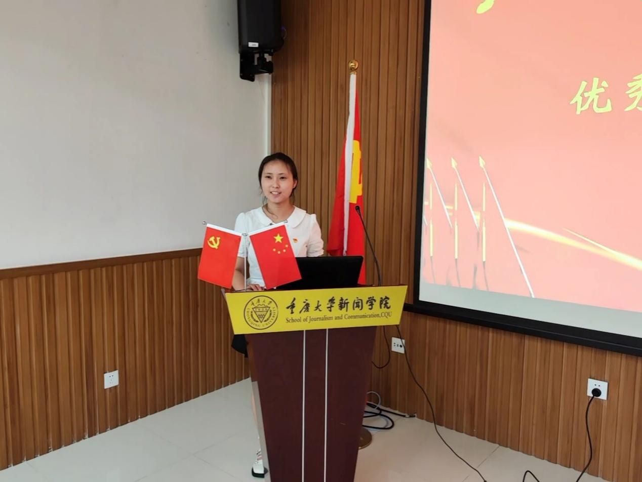 2019级本科生徐昕悦同志代表新入党同志发言。她表示,作为一名新闻学子,必将培育坚定的理想信念,好学求真,力行至善,用好专业所学,为用心用情讲好中国故事打好坚实基础,在时代浪潮中承担责任和使命。今年是中国共产党成立102周年,作为共产党员,作为时代青年,她必会牢记党的教诲,立志民族复兴,不负韶华,不负时代,不负人民。