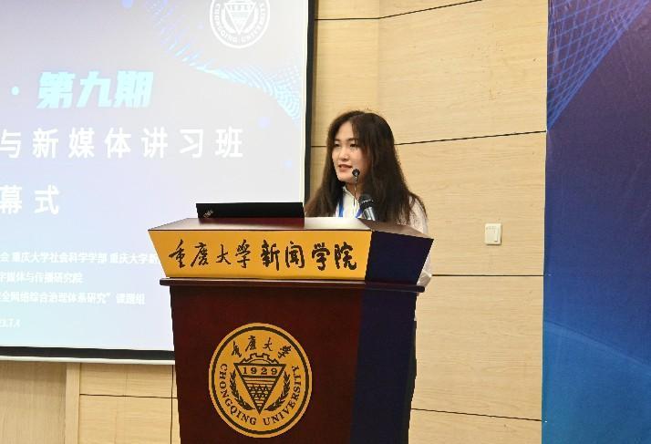武汉大学艺术学院硕士研究生沈雅秋作为学员代表发言。沈雅秋说道,学生、学者的成长离不开老师们的谆谆教诲与同窗们的守望相助,网络与新媒体讲习班能为大家在领域内深入学习研究提供非常有益的帮助。