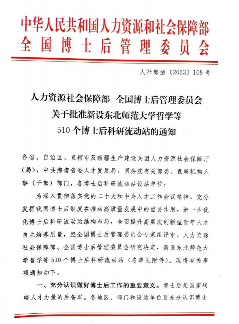 近日,人力资源社会保障部、全国博士后管理委员下达了《关于批准新设东北师范大学哲学等510个博士后科研流动站的通知》,八所高校获批新新闻传播学博士后科研流动站,第一影视