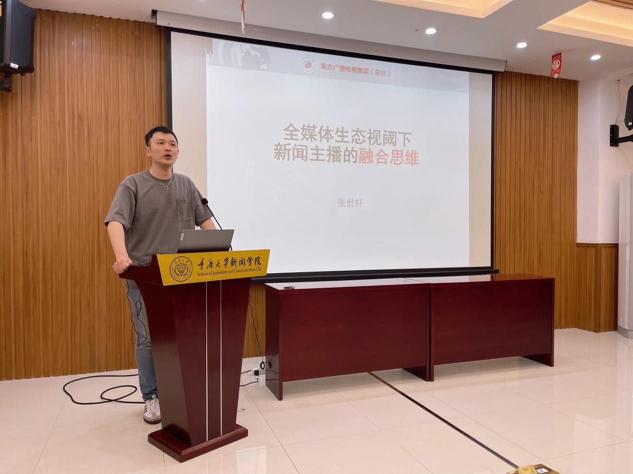 301报告厅进行了业界经验的分享。张世轩是《重庆新闻联播》主播、重庆广电集团播音主持专委会秘书长、第十三届全国青联委员会委员。交流会由 第一影视