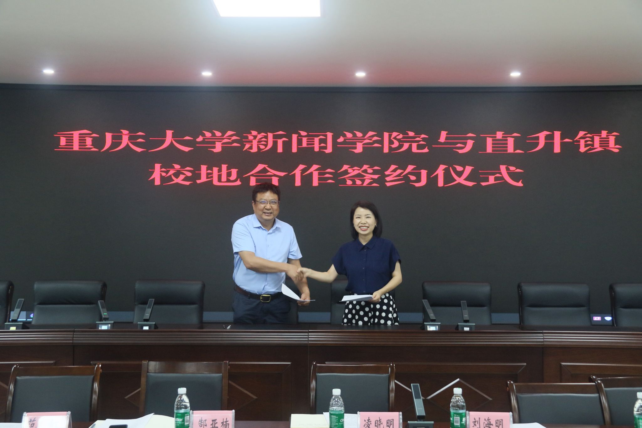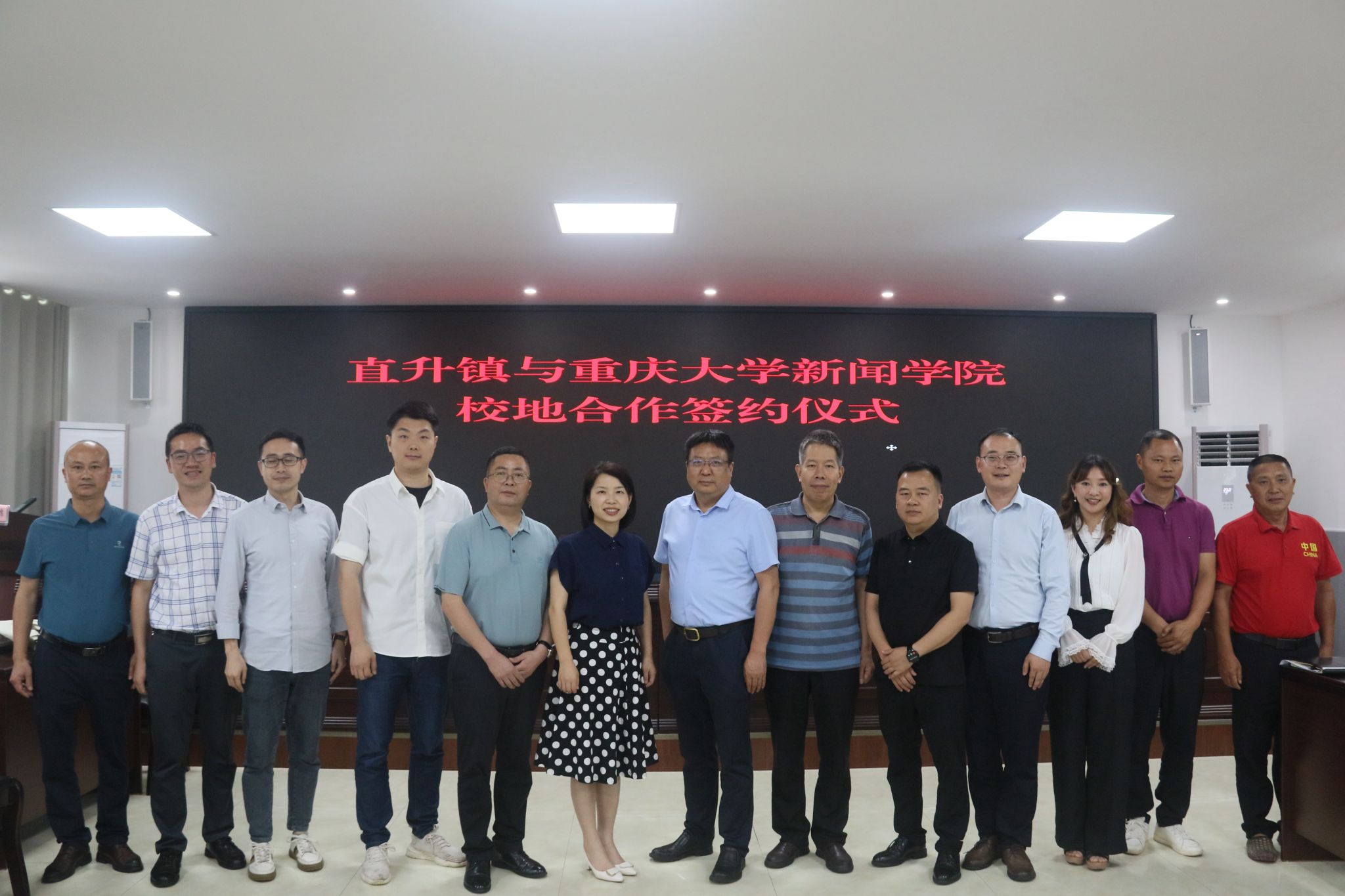 与荣昌区直升镇人民政府校地合作会议在荣昌区直升镇举行。荣昌区直升镇党委书记张雪,党委委员、宣传委员、统战委员叶松生,村党支部书记代表周凯、陈善荣、张正华,荣昌区融媒体中心副主任白真波,专题部副主任唐瑶, 第一影视