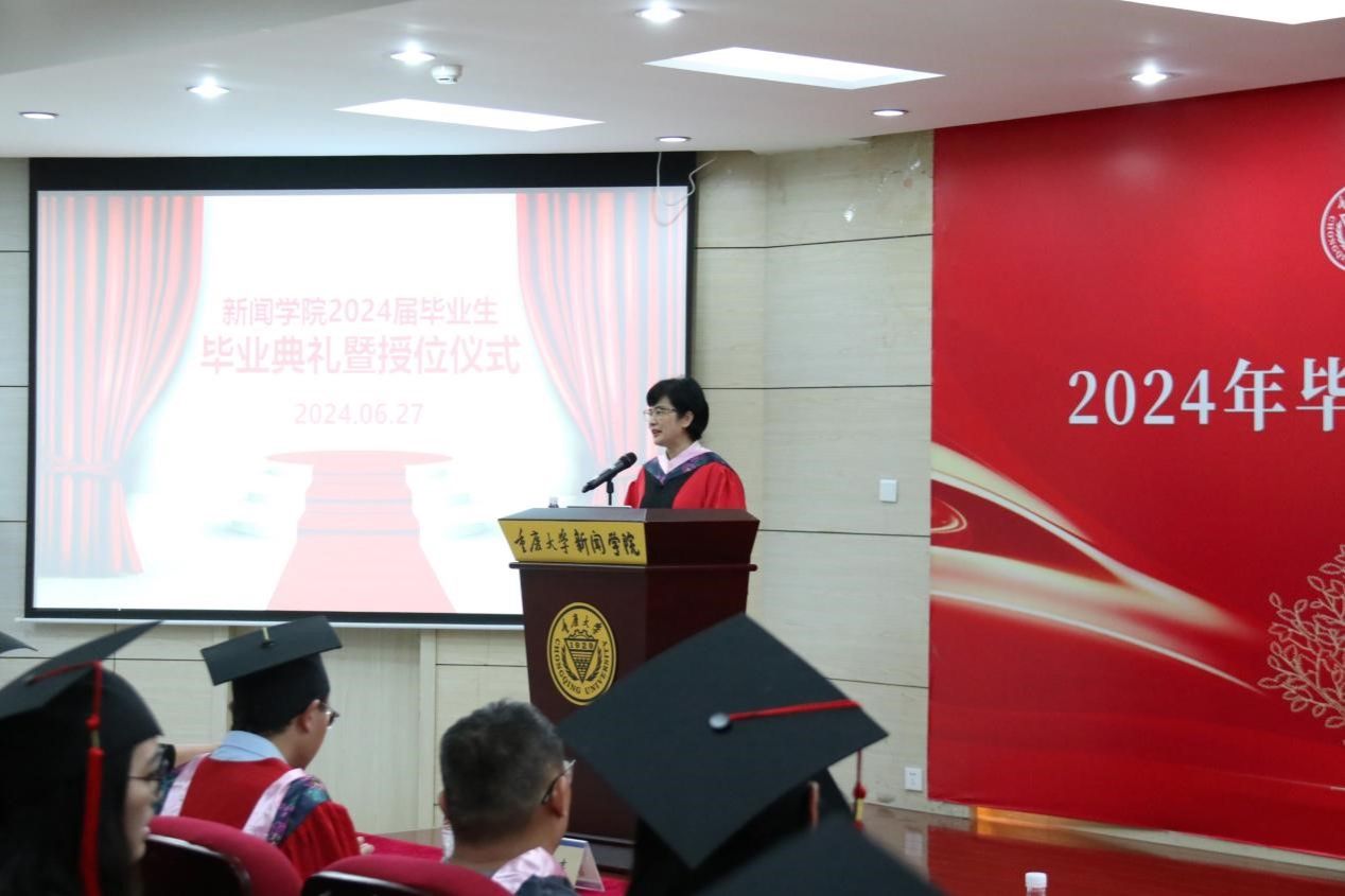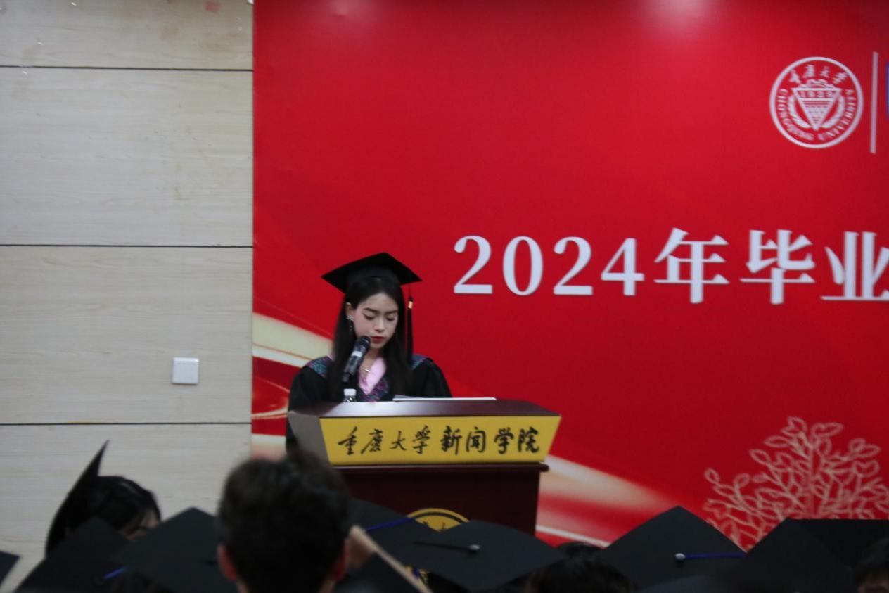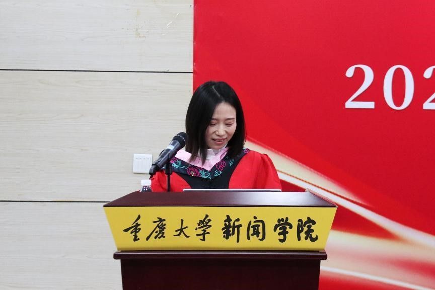 和老师们的培养,使其在喧嚣中保持自我,不断成长。同时,她呼吁同学们在未来的道路上心怀梦想,勇敢前行,在各自的岗位上发光发热,展现重大新传学子的风采。