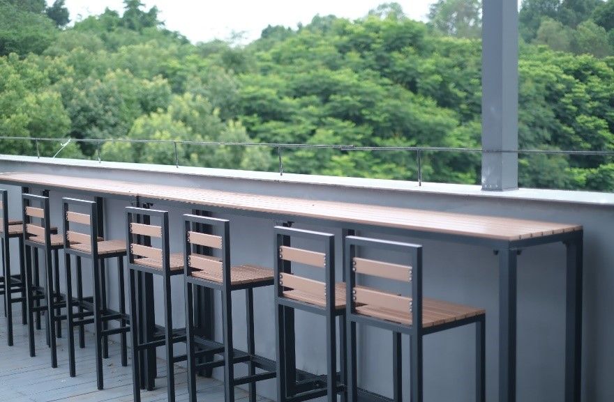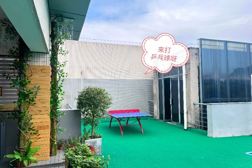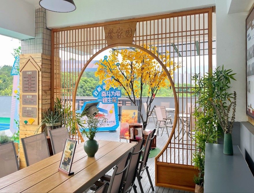 本次“馨家园”的升级改造资金主要来自于社会捐赠,地址选取了学院五楼近300平方闲置废弃露台,设立了厚积读书荟(取“博观而约取,厚积而薄发”之意)、师说新语谈心吧 (意为“言为士则,行为世范”)、博闻小讲堂(主旨是“博闻启智,乐教乐学”)以及微光茶话屋(取“师者如光 微以致远”之意)、“新视野”空中吧台。同时,“馨家园”还建设了羽毛球运动区和乒乓球场地,规划了图书阅览区、教职工文创展示区、教职工书画作品区等。