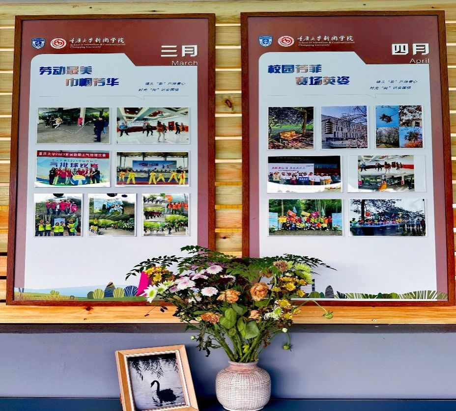 教工摄影作品暨教职工风采展按照12个月份依次在墙面上徐徐展开。一月红梅初绽、万象更新,用影像记录了教职工之家组织的迎春活动、联欢活动和慰问活动;二月阖家团圆、共赴新程,展现学院分工会开展的新春慰问和团圆美食活动;三月劳动最美、巾帼芳华,展现校园春光与三八节活动情况;四月校园芳菲、赛场英姿,记录了教职工参加学校运动会的场景;五月躬耕教坛、踏月而归,展现了课堂教学与研讨情况;六月纸短情长、初心不忘,感恩师长、毕业送别的场景历历在目;七月缙云荷韵,回望向往,八月山长水阔、未来可期,均是教职工的摄影作品展览;九月金桂飘香、师者如光,展示了学院的教学名师、十佳教师和最受欢迎老师的照片;十月幸与君同,爱校建家,则记录了职工小家建设、学院文化建设情况与中秋活动的现场;十一月以风为墨、岁月书签,是学院教职工的著作、书法、诗歌展览;十二月的照片主题是心之所向,逐梦前行,见证老师们回顾总结过往,追梦未来的风采。