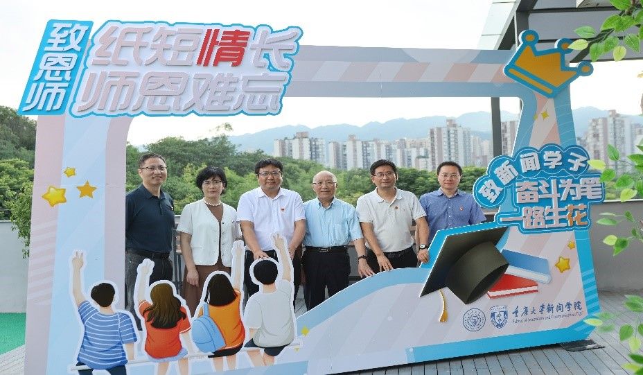 新华社原副社长、常务副总编辑马胜荣、学院党委书记凌晓明、院长郭小安、党委副书记陈娜和副院长曾润喜、张小强、 第一影视