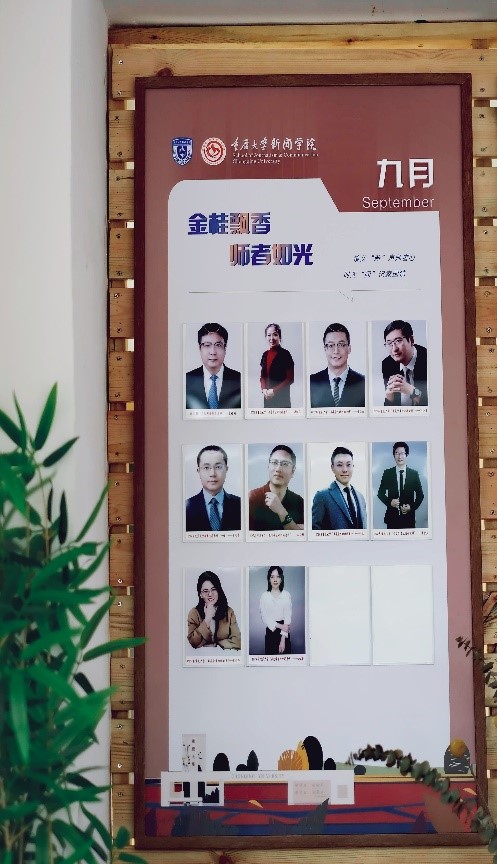 在“馨家园”的入口,陈列“镜头‘新’声师者心,时光‘闻’记家国情”主题展板, 第一影视